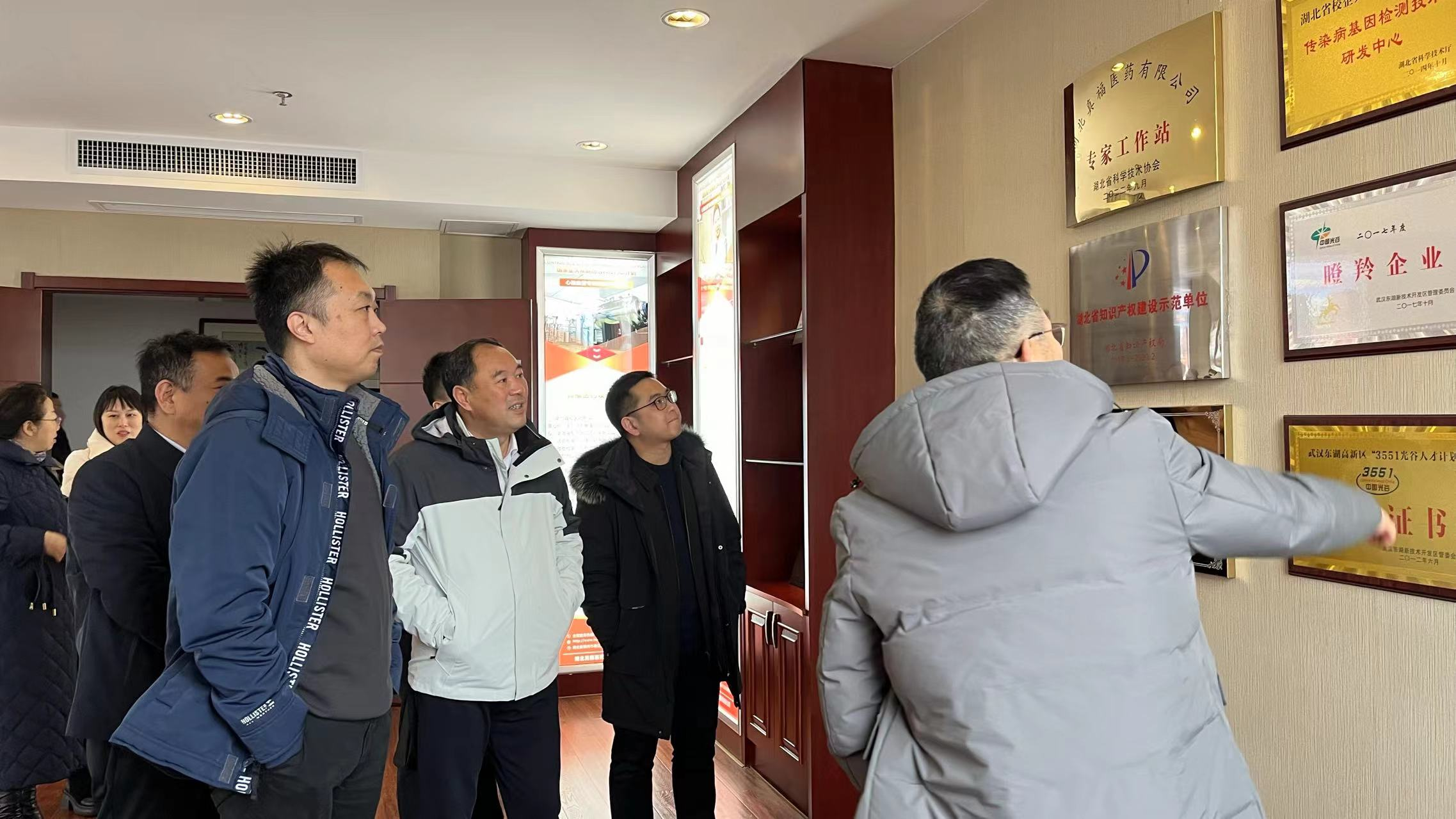 2024年2月21日,鄂州經(jīng)過一場春雨的洗禮后,煥發(fā)出盎然的生機(jī)。上午時(shí)分,真福醫(yī)藥迎來了一場重要的走訪調(diào)研活動(dòng)。市政府黨組成員王升澤、市政府辦公室副主任劉暢、市市場監(jiān)管局局長鐘文、市公共檢驗(yàn)檢測中心主任熊新良一行領(lǐng)導(dǎo),在葛店經(jīng)濟(jì)技術(shù)開發(fā)區(qū)黨工委副書記、管委會(huì)主任邱建明和經(jīng)開區(qū)經(jīng)濟(jì)發(fā)展局局長祝曉榮等區(qū)領(lǐng)導(dǎo)的陪同下親臨湖北真福醫(yī)藥有限公司進(jìn)行實(shí)地考察與深度交流,以實(shí)際行動(dòng)推進(jìn)包保企業(yè)服務(wù)工作,為企業(yè)注入新的活力與發(fā)展動(dòng)力。領(lǐng)導(dǎo)們實(shí)地走訪了公司的行政大樓以及生產(chǎn)車間后,在會(huì)議室展開會(huì)談。